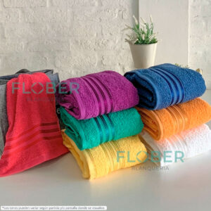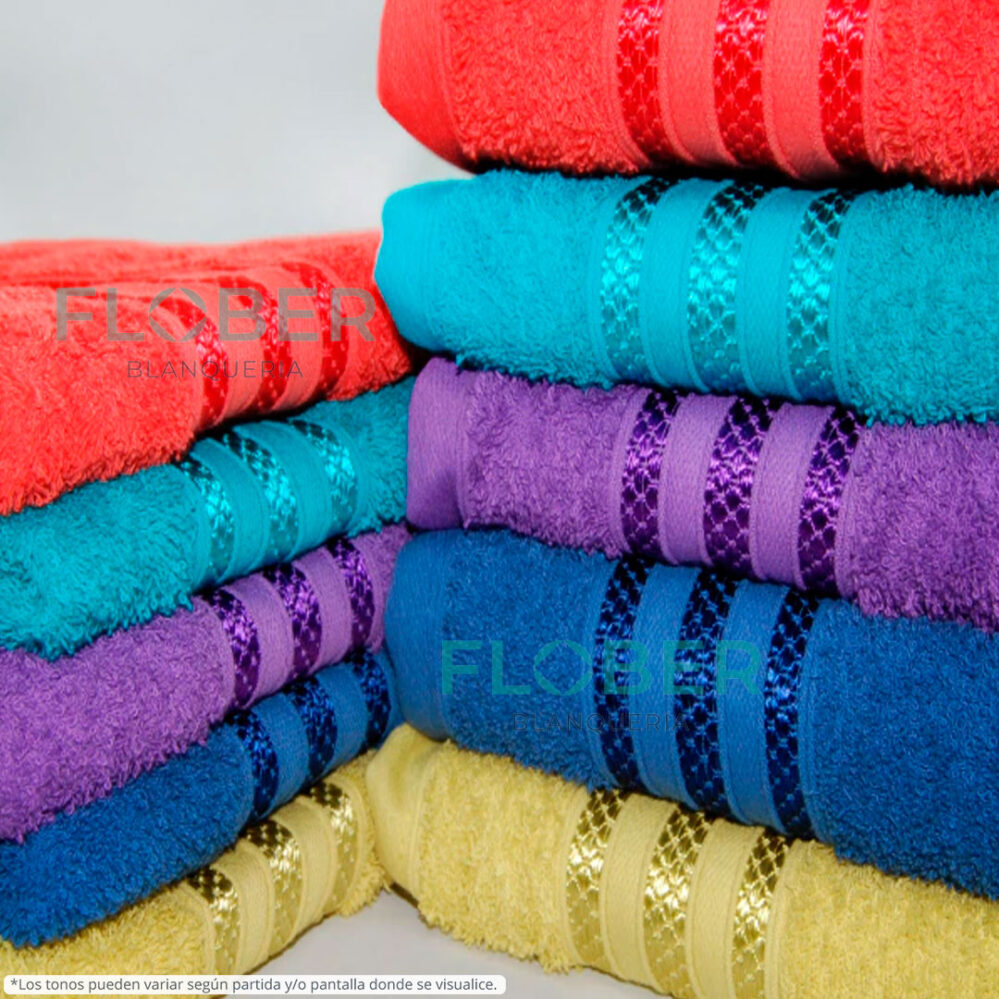 Juego completo de Toalla y Toallón de puro algodón, de colores lisos con guarda.